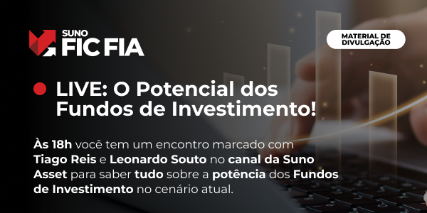 Investidor, hoje às 18h o fundador da Suno, Tiago Reis, vai conversar AO VIVO com Leonardo Souto, Analista de Ações da Suno Asset. E você é nosso convidado para entender como podemos investir o seu dinheiro para você!